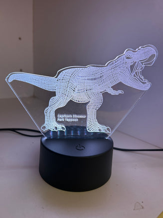 Capricorn Dinosaur Park engraved acrylic night light of a Tyrannosaurus Rex. Changes through a range of colours.